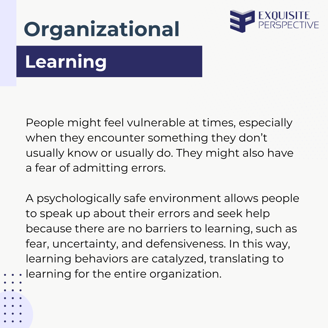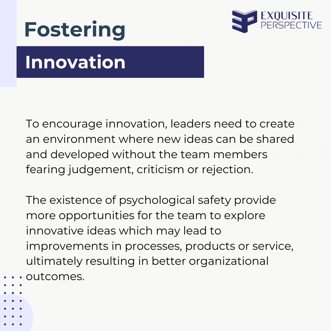 When there is psychological safety in a team, team members are more assured that others will not respond negatively to them. As a result, they tend to be more open to “speak up”, share information and knowledge, ask for help, admit mistakes, suggest ideas and innovations, and initiate the development of the tasks and responsibilities.